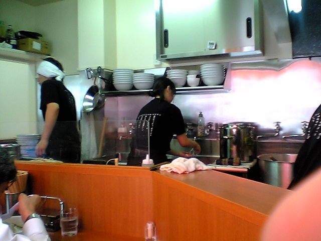 しかも,この店は食券制.だったら,カウンターの中に2名の体制で回せそうな気もするのだが,まあ,オープンして間もないし,お昼時だから,普通よりも多めにしてるのかなあ.