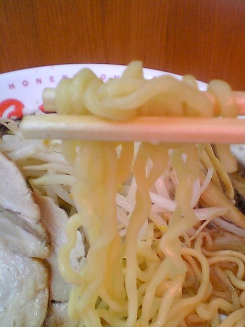 麺はかなり太い.最初はチャンポン麺かと思ったくらいなのだが,微妙にウェーブがかかっていて,独特の歯応えがある.