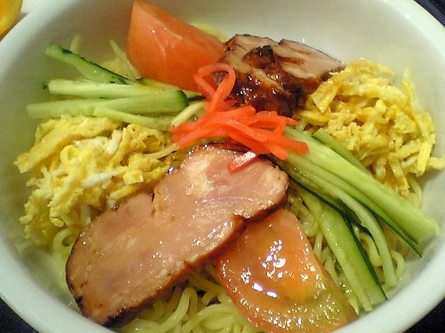 冷麺といっても焼肉屋で出てくるような歯応えのあるタイプではなく,いわゆる「冷やし中華」.