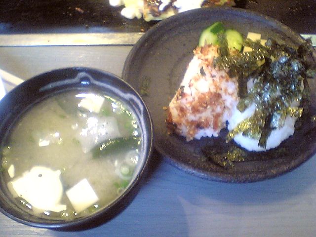 それなりのボリュームはあったのだが,お腹が減っていたので,おにぎりのセットを追加注文.これも正確な値段は覚えていないのだが300円程度.
