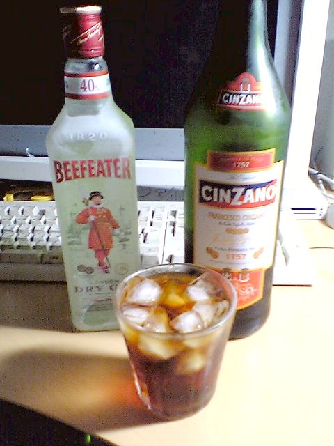 ノイリープラット・ドライを最初に飲んだときは「きつい白ワイン」という感じだったのだが,このチンザノ・ロッソは基本的には甘いのだが,微妙な風味が色々と混じっていて,単体で飲んでも何だかカクテルを飲んでいるような感じがした.