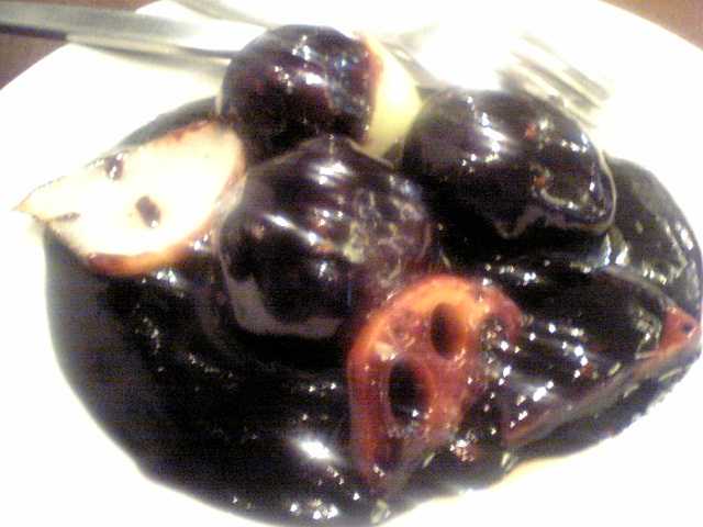味のほうは,見た目の真っ黒さほどのインパクトはないが,黒酢由来だと思われる濃厚な味で,ご飯がすすむ,あるいはビールが欲しくなってくる.