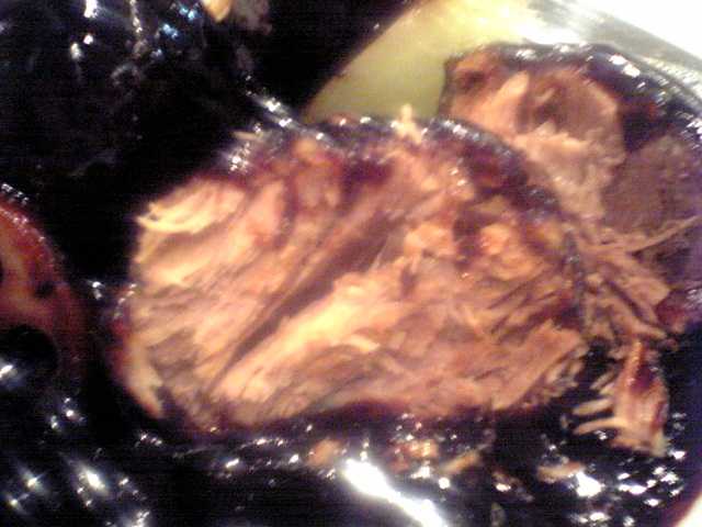 しかし,こんな肉のカタマリ,ナイフとフォークでもないと切れないんじゃないか?と思いつつ,箸でつついてみると...
