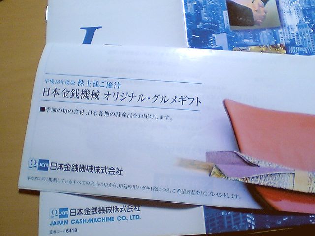 デジカメのデータを整理していたら,日本金銭機械の株主優待の写真がでてきた.