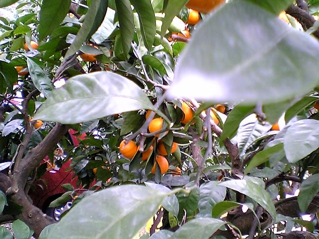 両手に軍手をはめ,微妙に湾曲したハサミを手に,みかんの樹に挑む.