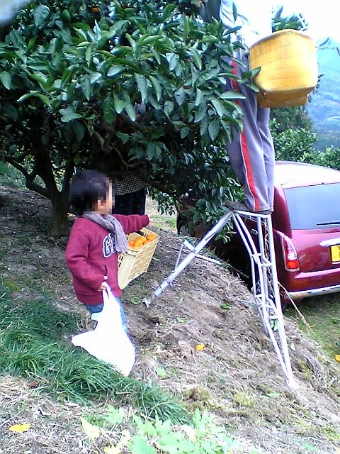 ちなみに首からは収穫したみかんを入れるためのプラスチック製の籠をぶら下げていた.