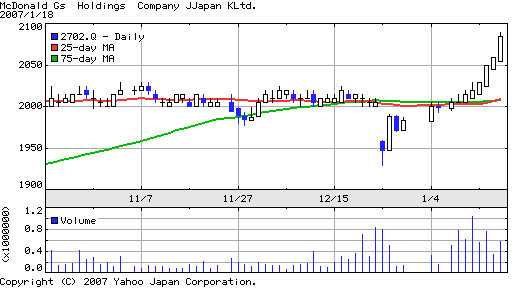 ちなみに,1/18時点でのマクドナルドの株価だが,