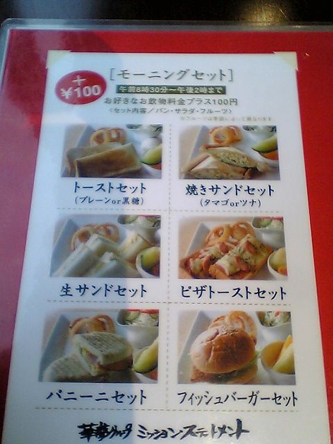 しかし,左上の単なる「トーストセット」と,材料も手間もかかったそれ以外のセットが同じ料金というのはどういうことなんだ? もしかしてトーストセットはトーストの枚数が多いんだろうか?