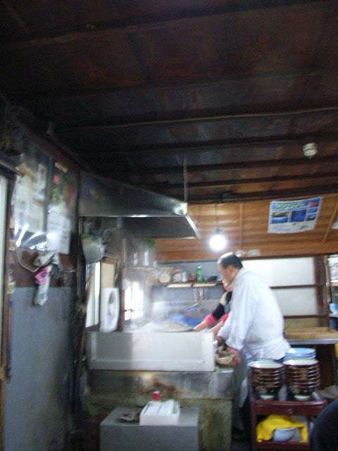 ここで茹で上がった麺の入った丼をもらい,この写真の右側で具をチョイス,料金を払ってから,ネギやらダシやらをかけていただく.