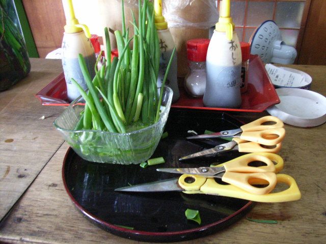 おおっ,これが有名なネギ&ハサミか!と感動しつつ,ハサミでチョキチョキ切っていると,