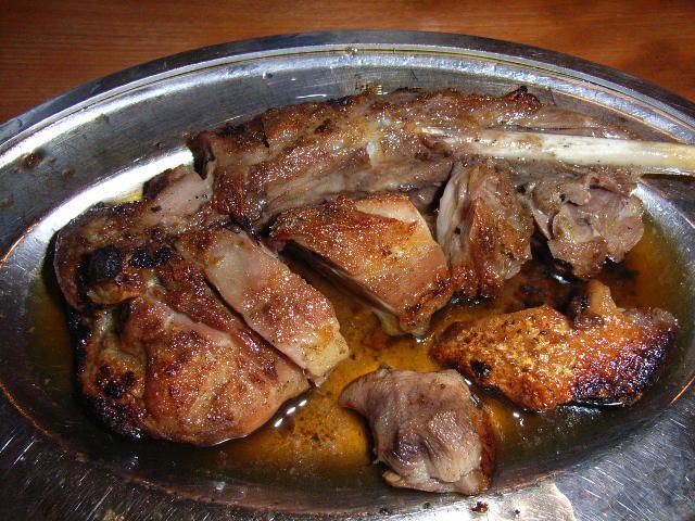 骨付鳥の店だから骨付鳥を注文するのは当然のことなのだが,やわらかい「ひなどり」(819円)と歯応えがあって味が濃厚な「おやどり」(977円)がある.私が注文したのは「おやどり」だったかな.