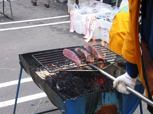 会場ではこんな感じでわら焼きにして売られていた.