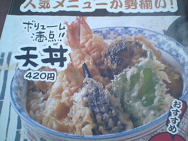 営業時間からして狙うならば昼食時,となると行ける日の半額メニューは...本町店の天丼か.ここの天丼は食べたことがなかったし,ちょうどいいや.