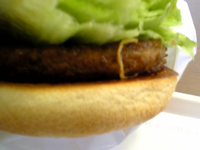 ピントがずれている&角度がおかしいので,かなり分かりにくいのだが,パティの厚さが分かるだろうか?