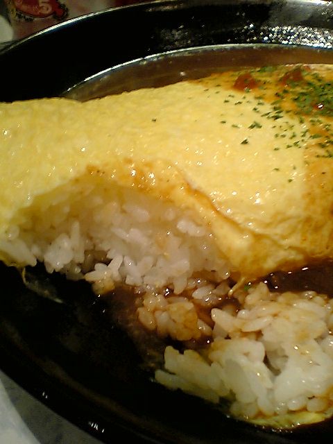 見て分かるように,このうーさんカレー,いわゆるオムカレーのことで,中はこんな風に
