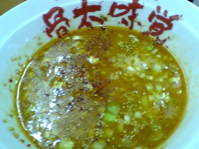 この写真だとサイズが分からないが,この器は普通のラーメンどんぶりだった.麺が多い分,タレも多くしないといけないためだろうか.