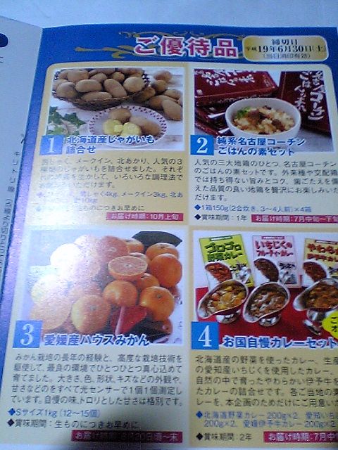 で,その優待だが,合併した3社の地元の特産品を使った食品4種類から選ぶタイプになっており,今回の案内はどれを選ぶかを知らせて欲しいとのことだった.