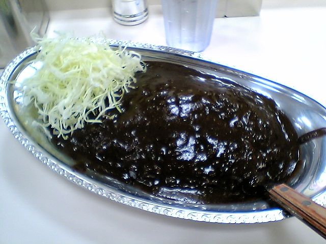 一目見て驚くのがその黒さ.船場カリーもビックリの黒さだ.