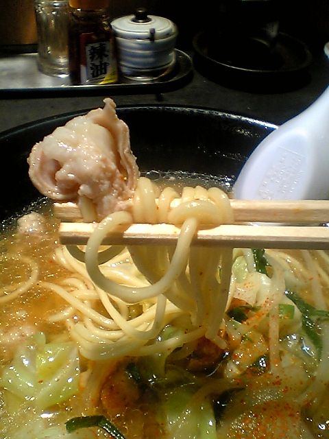 まずはピリ辛モツそば.