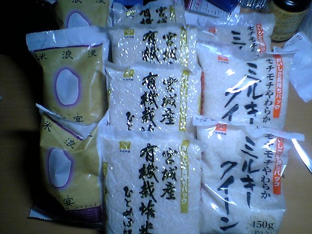 ちなみに,今回入っていた手紙によると,食べる目安は精米日から3ヶ月らしいのだが,手元にある一番古い米の精米日は2006年3月だったりする...