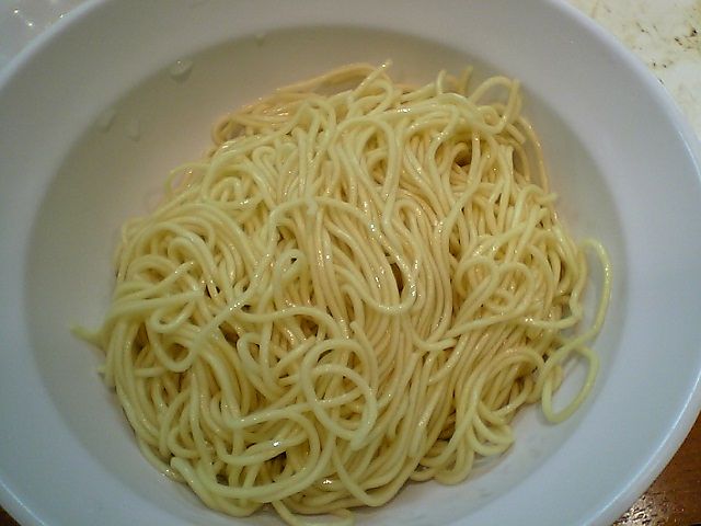 標準の量ではちょっと足りなかったので,替え玉を注文(150円).替え玉も食券を買わなければいけないのだが,店員さんにお金を払えば買ってきてくれる.