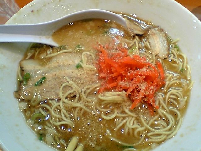 二杯目は紅ショウガとゴマを入れてみた.ベースの味が強いので,それほど味は変わらない.松山分校や長浜一番だと卓上に常備されている辛子高菜で味が変わるんだけどなあ.