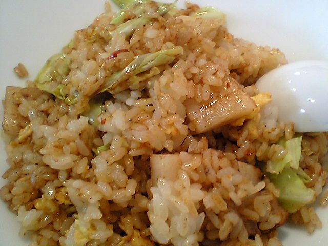 あんかけチャーハンのように,チャーハンの上に回鍋肉が載っているものを想像していたのだが,完全に混ざっていた.