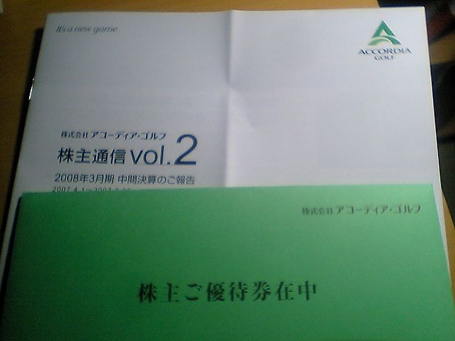 アコーディア・ゴルフの株主優待は今年度から始まったので,もらうのはこれが初めて.