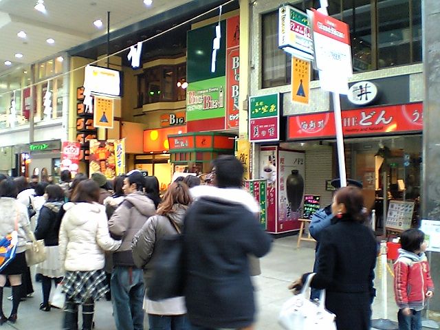開店前はどの行列も長さは同じくらいだったのだが,入り口の広さが違うためか,開店後に行列が解消されるスピードが全然違う.