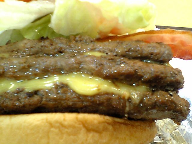 枚数だけならパティ4枚のメガマックの方が多いのだが,メガマックはパティ1枚45グラムでその4倍だから180グラムらしい.