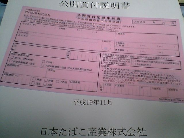 公開買付説明書と応募申込書をゲット.