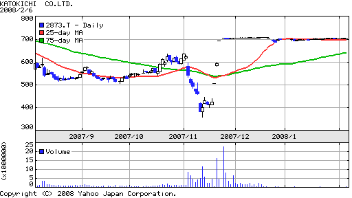 なので,特に見通しを持つこともなく,買ったままずーっと持ち続けていたのだが,循環取引が発覚したり,ミートホープ社の食品偽装に巻き込まれたりで,株価は買値の半額近くにまで暴落してしまった.