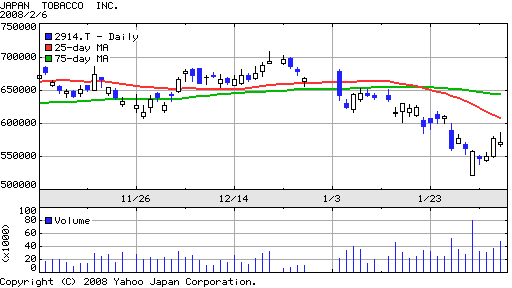 などと思っていたら,買収先のJTが毒餃子事件に巻き込まれて,株価が暴落中.