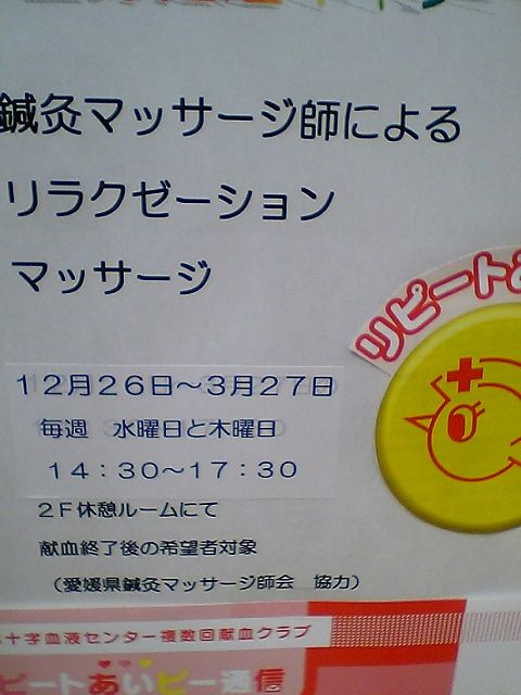 既に昨年末のことなのだが,久しぶりに大街道の献血ルームに行ってきた.