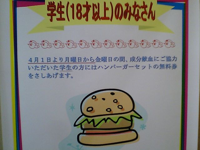 ただし18歳以上の学生で成分献血をした人のみ.