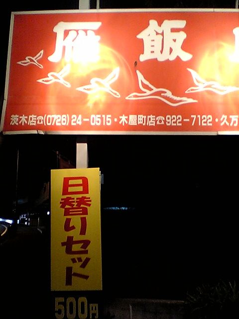 以前,雁飯店久万の台店に行った際,夜の日替わり定食の存在を知った.