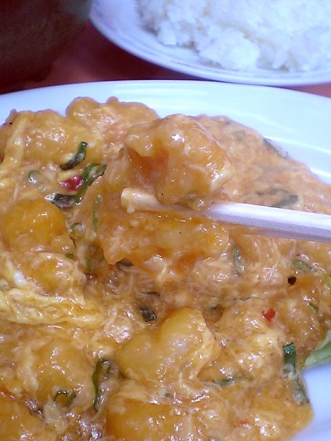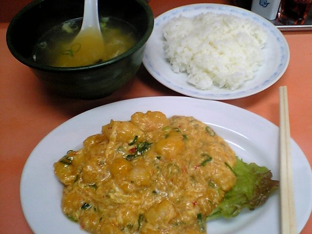 味の方だが,もちろんちゃんとしたエビチリの味.卵が多めなので辛さ控えめかと思っていたのだが,最初は卵のためにまろやかに思えたのもつかの間,それなり辛い.