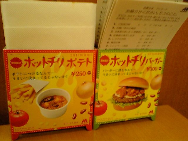 この写真では判別できないが,実際にはスパイシーホットチリバーガーなので,ハラペーニョが入っている.モスのウェブサイトによるとスパイシー系のハラペーニョがみじん切りに変更されたらしいのだが,これに入っていたのは従来のままだったような気がする.それともみじん切りのサイズが大きめなのか?