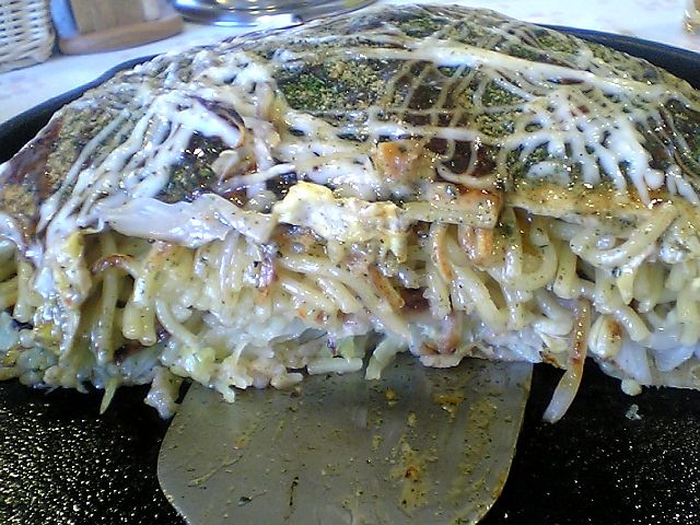 元・大阪人からすると広島風はお好み焼きを食べているのか,そばを食べているのか分からないので,広島風はあまり食べないのだが,このボリュームの違いからすると,この店では広島風ばかり食べてしまいそうだなあ.